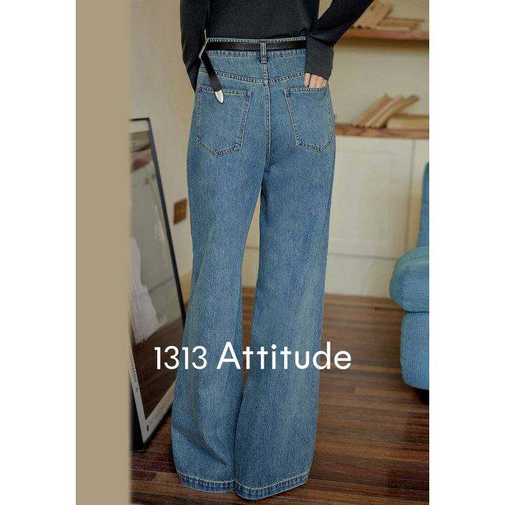 【现货】1313清爽随性直筒洗水蓝高腰牛仔裤2025春女休闲阔腿长裤