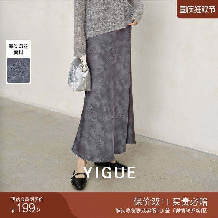 亦谷新中式国风印花鱼尾半身裙女2024年秋季新款修身显瘦绝美裙子