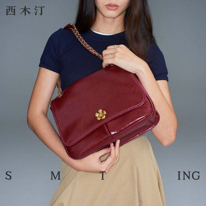 【西木汀】无微不至 炼条斜挎包女新款红色婚包牛皮包包新娘礼物
