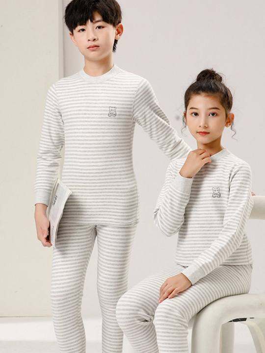 青少年秋冬中领大童彩棉保暖内衣套装男初高中学生舒绒秋衣秋裤女