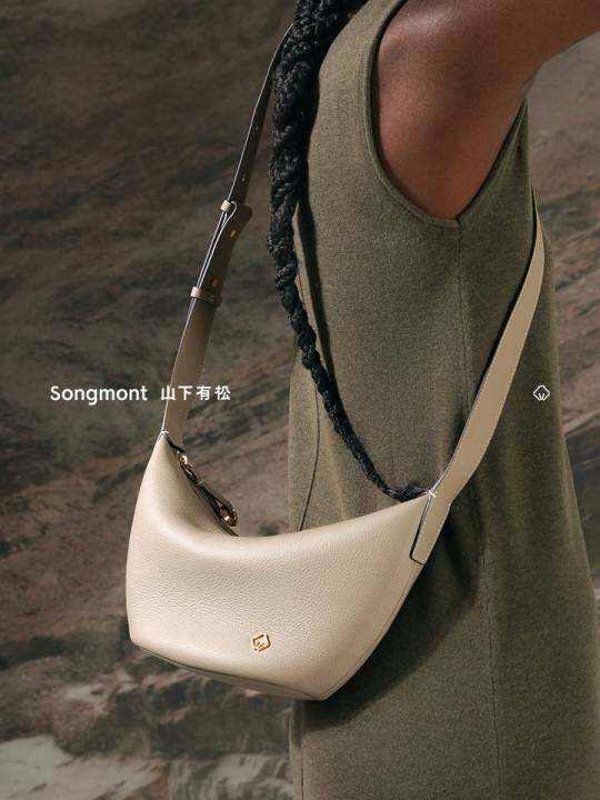 Songmont山下有松坐忘系列软船包设计师款通勤单肩斜挎牛角包