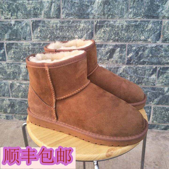54牛筋底雪地靴女羊皮毛一体女男学生冬短筒平底加厚防滑保暖套筒