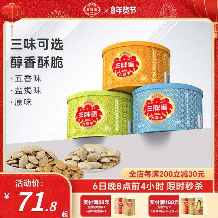 三胖蛋南瓜子原味五香南瓜籽176gx3罐装内蒙特产露营旅游零食坚果