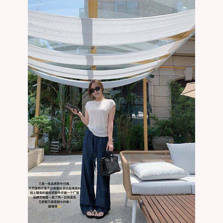 豆豆早安5/29 10:00上新 天然植物纤维蚕丝休闲直筒裤下拉细节图