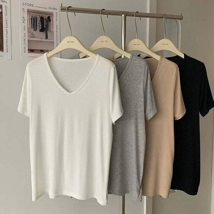 认真卖 我的心头好!裸睡质感上身无束缚家居服莫代尔V领T恤女