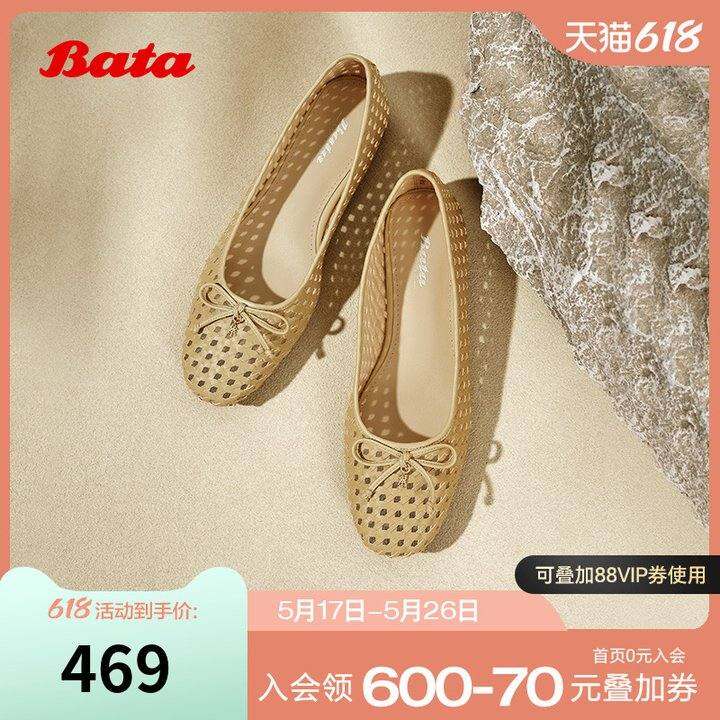 Bata浅口单鞋女2025夏季商场新款优雅编织通勤软底单鞋AVL50BQ5