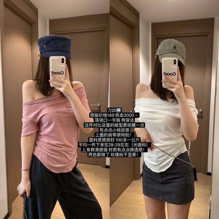 蔡妞妞_欲感松弛 荡领or一字肩都很好看的修身T女夏季(多穿法)