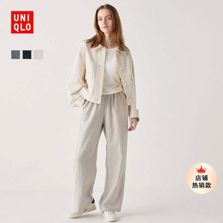 优衣库女装法兰绒松紧长裤/阔感裤薄款宽松休闲24新款471553