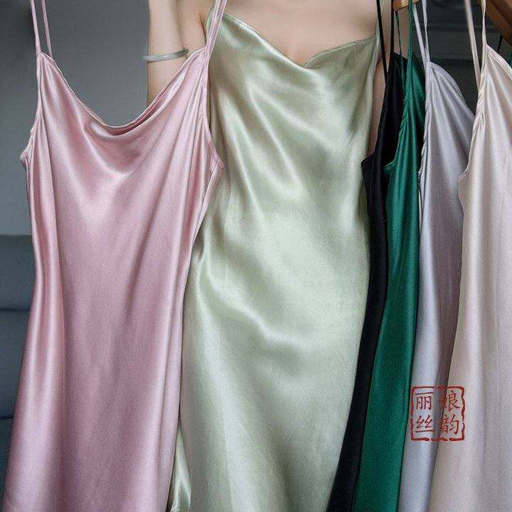 法式优雅真丝睡裙荡领100%桑蚕丝吊带修身温柔风连衣裙丝绸夏季