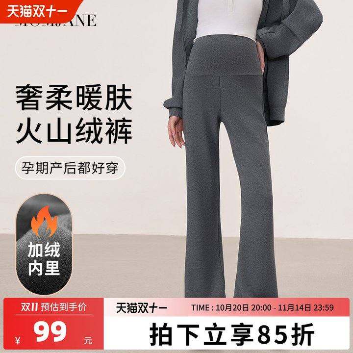 孕妇高腰微喇裤子秋冬季加绒不勒肚子孕期产后翻腰休闲裤托腹长裤