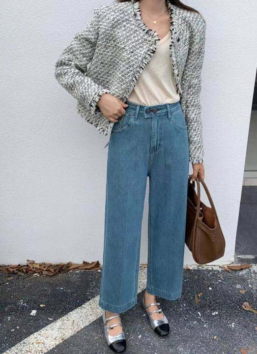 Kabodo68087卡布牛仔裤女2024秋新款欧货高腰宽松九分阔腿奶奶裤