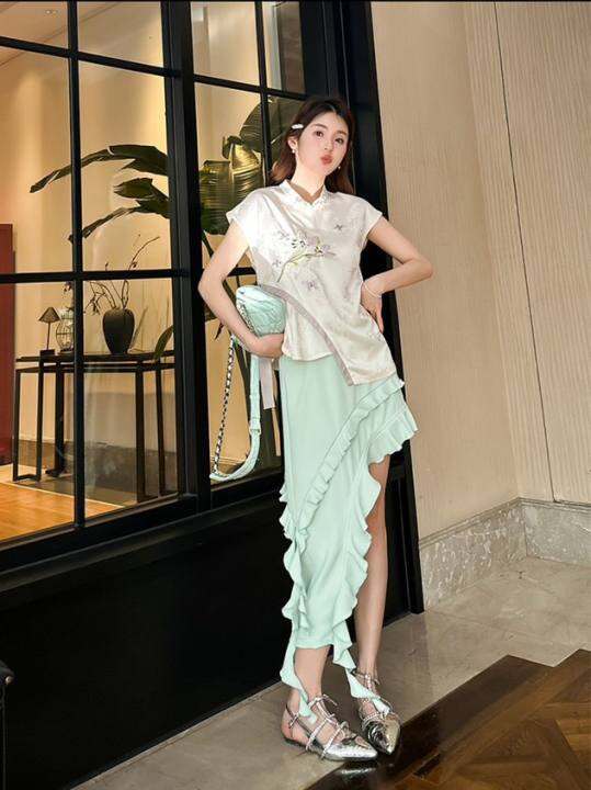 古拉良品原创「兰庭馥香」新中式刺绣衬衫国风清冷感不规则上衣夏