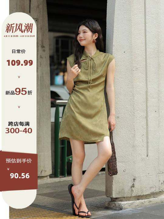 冷萃绿茶!轻熟姐姐气场get 改良旗袍气质提花连衣裙 限时95折