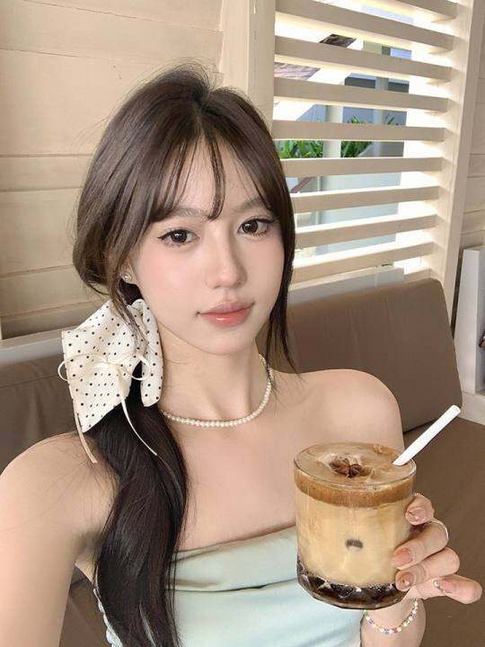 【蜜桃茶】清迈假日 波点蝴蝶结发圈头绳女法式马尾飘带发绳头饰
