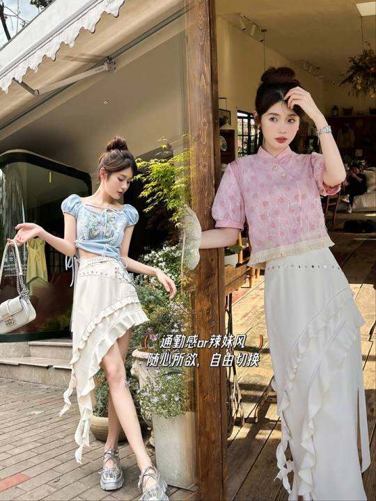 古拉良品原创「两穿的乐趣」荷叶边别致甜辣半身裙飘逸不规则长裙