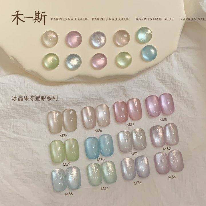 禾一斯新品显白冰晶果冻玻璃珠猫眼冰透珠光爆闪美甲罐装甲油胶