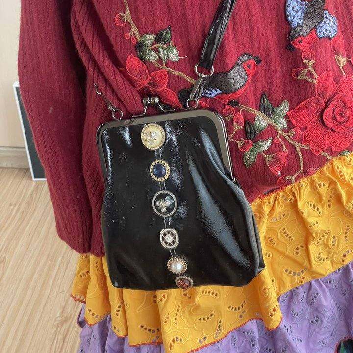 三歪原创复古辣妹vintage做旧钻石纽扣口金包夹子包小众高级斜跨