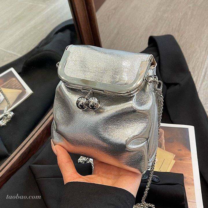 高级质感银色小包包女2025新款百搭链条斜挎手机包时尚迷你水通包