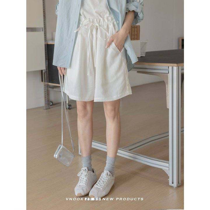 VNOOK 天丝花边阔腿短裤女夏2025新款松紧腰宽松显瘦休闲五分中裤