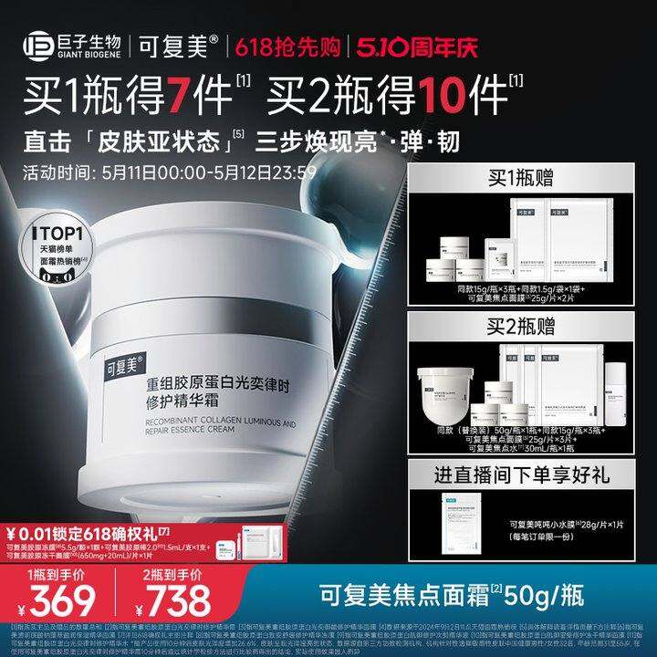 可复美焦点面霜重组胶原蛋白温和修护保湿舒缓滋润补水清爽面霜