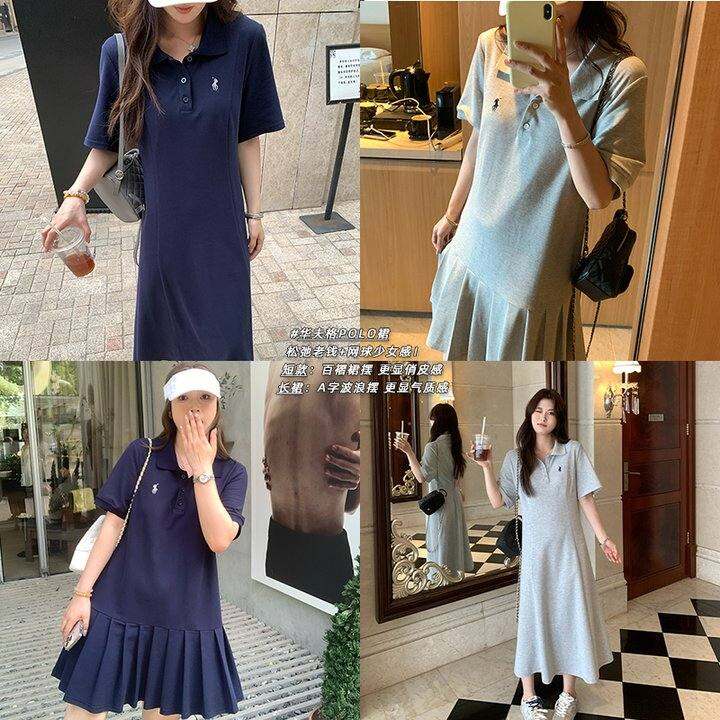 NAZ那子大码夏季华夫格刺绣polo领长短款T恤连衣裙胖mm休闲百褶裙