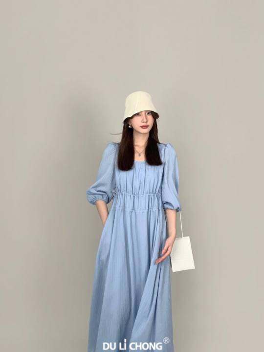 独立虫“画廊”OP 通勤气质短袖收腰方领显白小个子宽松连衣裙新