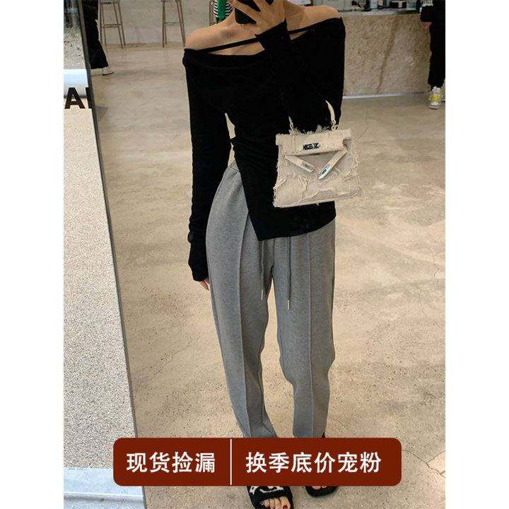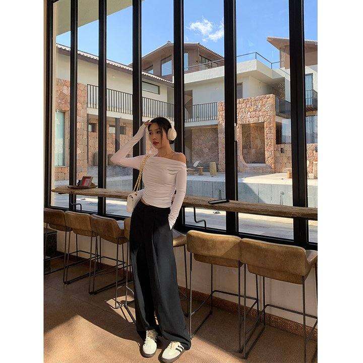 张只只 原张公子studio露肩打底衫女春季长袖t恤辣妹一字肩上衣女