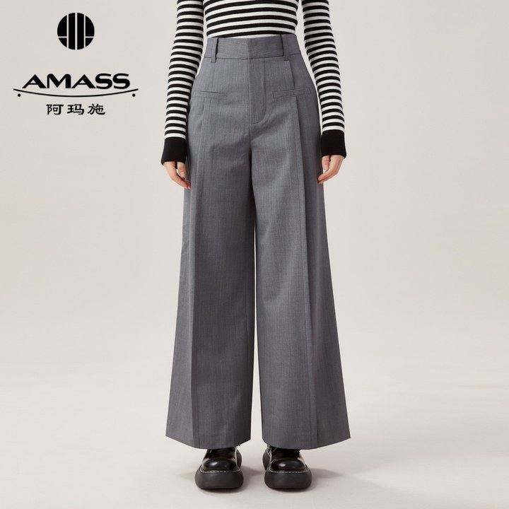 【官方正品】阿玛施 时髦宽松轻职场简约高腰直筒长裤5100375