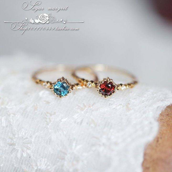 玫瑰海岸系列 绝色浓郁 天然伦敦蓝托帕石酒红石榴石925纯银戒指