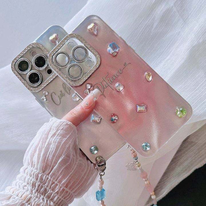 亦轩原创全包镜头带钻手机壳适用苹果16promax女神气质风iphone15粉色定制名字天然珍珠手提链斜挎背式保护壳