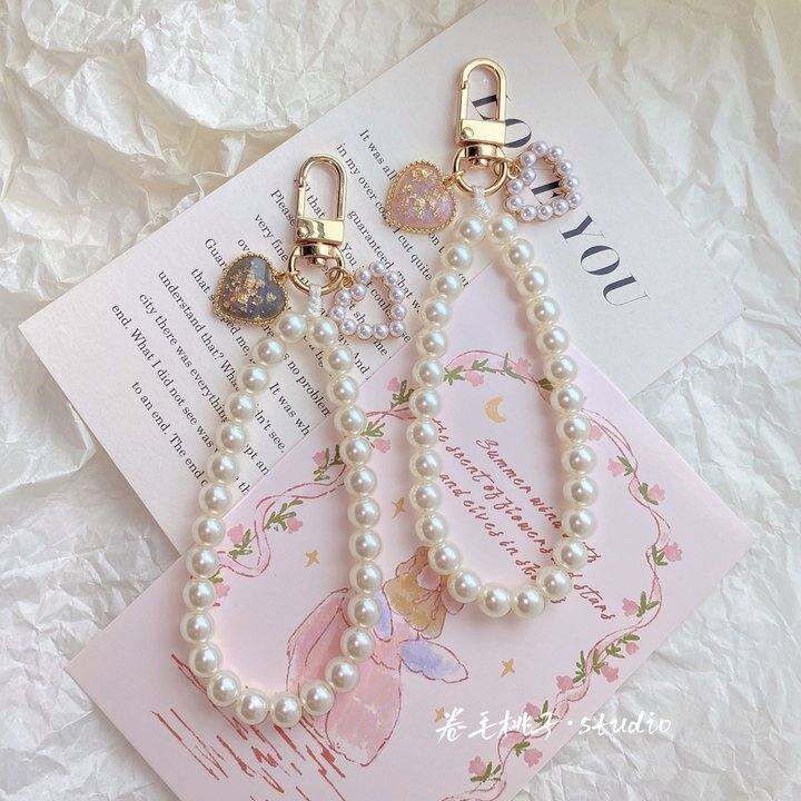 原创不会断珍珠链挂件钥匙扣爱心珍珠精致车钥匙包包挂件挂饰挂链