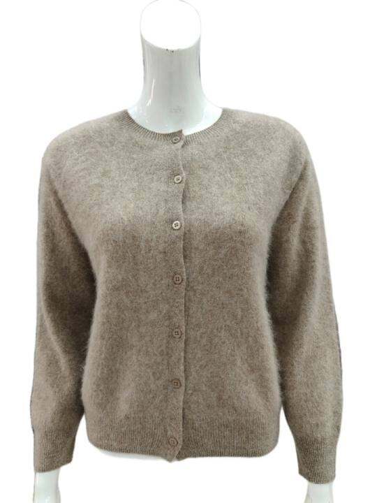 无缝秋冬新款羊绒衫女开衫圆领纯色百搭拉绒羊毛针织外套宽松上衣