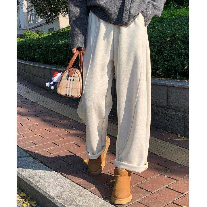 醋酸羊毛阔腿裤女秋冬加绒高腰毛呢九分萝卜直筒宽松弯刀香蕉长裤