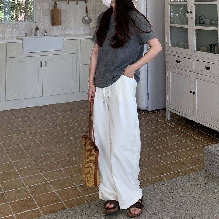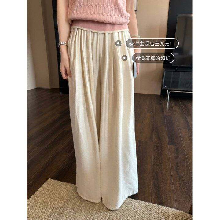 chengyaya 夏日清爽松弛感白色不透直筒裤垂直休闲抽绳阔腿拖地裤
