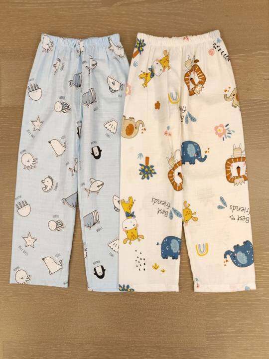 儿童睡裤纯棉男童外穿防蚊裤薄款夏季棉纱女童中大童宽松男孩长裤