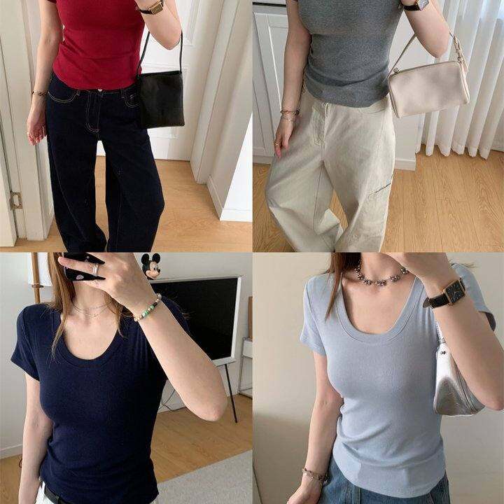 【bi入系列】优可丝U领修身显瘦正肩T恤