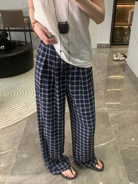 赵露思同款格子阔腿裤春夏季休闲宽松女慵懒显瘦加长格纹拖地长裤