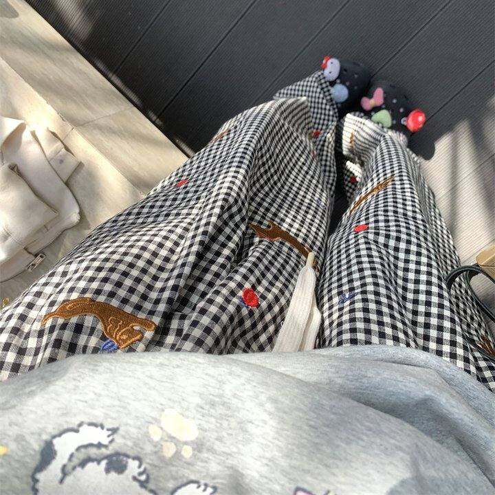 TTANG STUDIO 原创设计2025夏新款重工刺绣格子直筒阔腿休闲裤