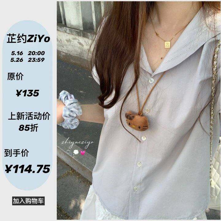 芷约ZiYo·雾雾蓝宽松少女感海军领衬衫短袖