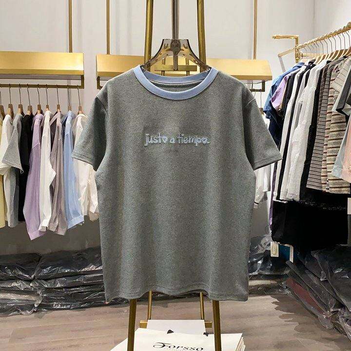 【晓艾档口实拍】春夏新款简约拼色刺绣字母设计感短袖上衣打底衫