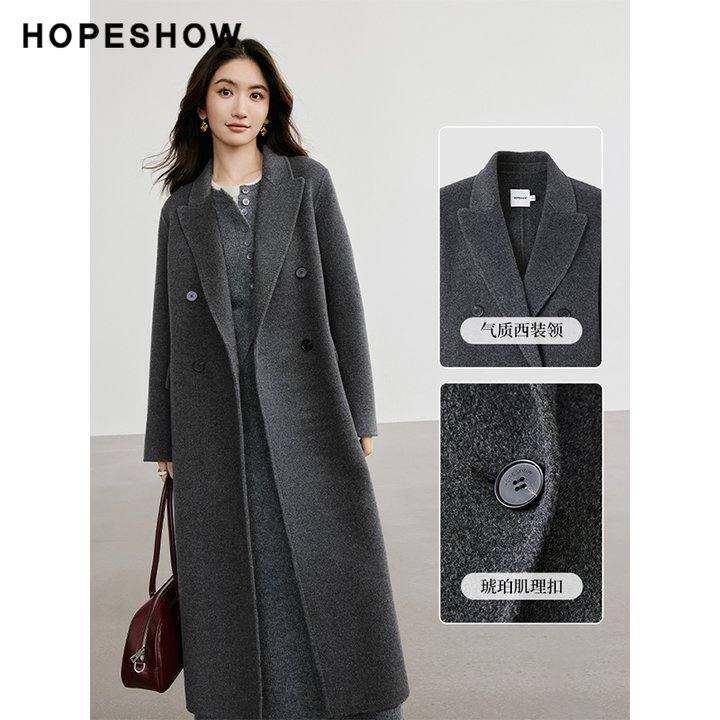 红袖高级感超好看毛呢大衣冬季2024新款女装100%绵羊毛双面呢外套