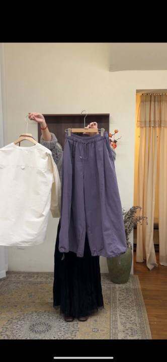 WE 4春季宽松大码简约森系百搭阔腿裤下摆抽绳设计灯笼裤纯色长裤