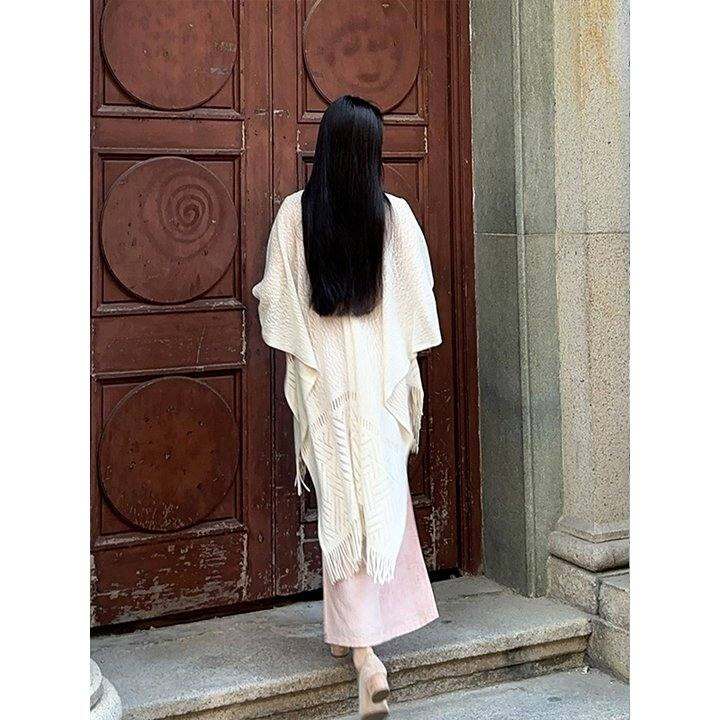 凌茜原创【清子】新中式针织外搭早秋纯色镂空百搭长款披肩