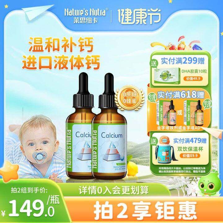 2瓶装莱思纽卡婴儿童液体钙婴幼儿乳钙宝宝搭补钙铁锌钙镁锌滴剂
