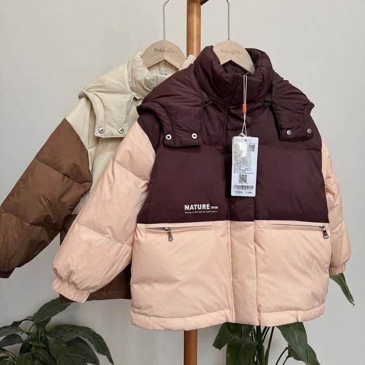 511107中大童男女童连帽立领羽绒服冬季90鸭绒羽绒外套