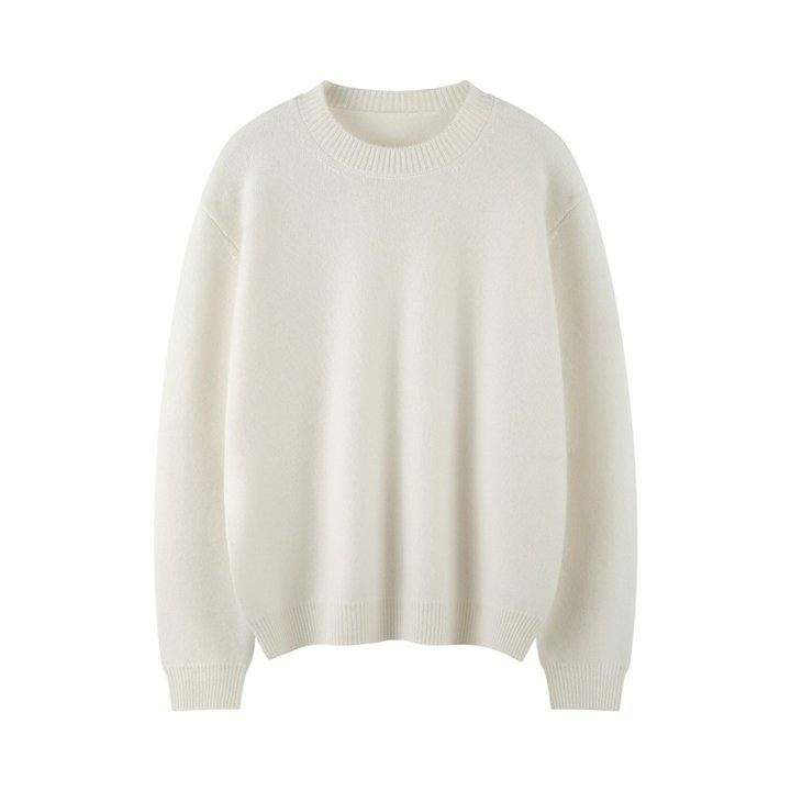 康赛妮100%纯山羊绒圆领厚款落肩袖7针双股简约通勤内搭针织衫
