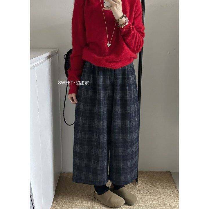 甜甜家-冬上新韩系压褶加绒格子裤休闲裤8319-5
