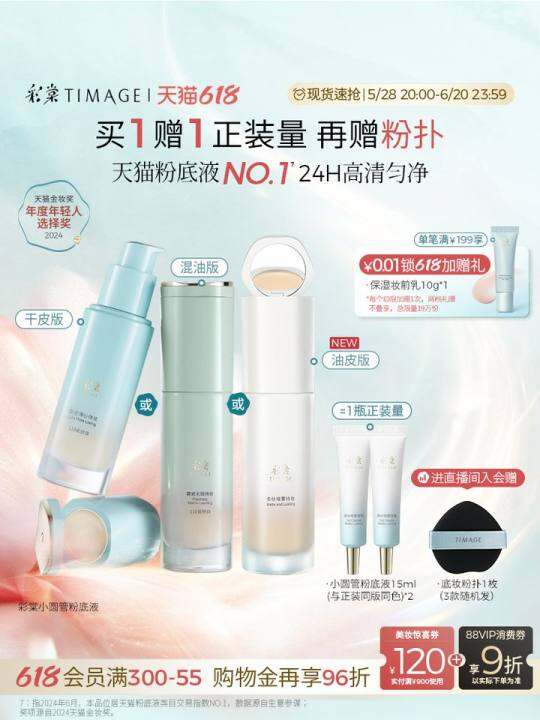 【618立即抢购】彩棠TIMAGE小圆管持妆粉底液混合肌持久不脱妆