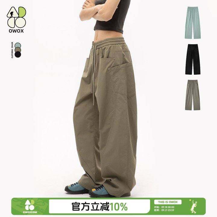 OWOX 侧边多口袋明线宽松休闲直筒弯刀裤纯色阔腿拖地香蕉长裤子