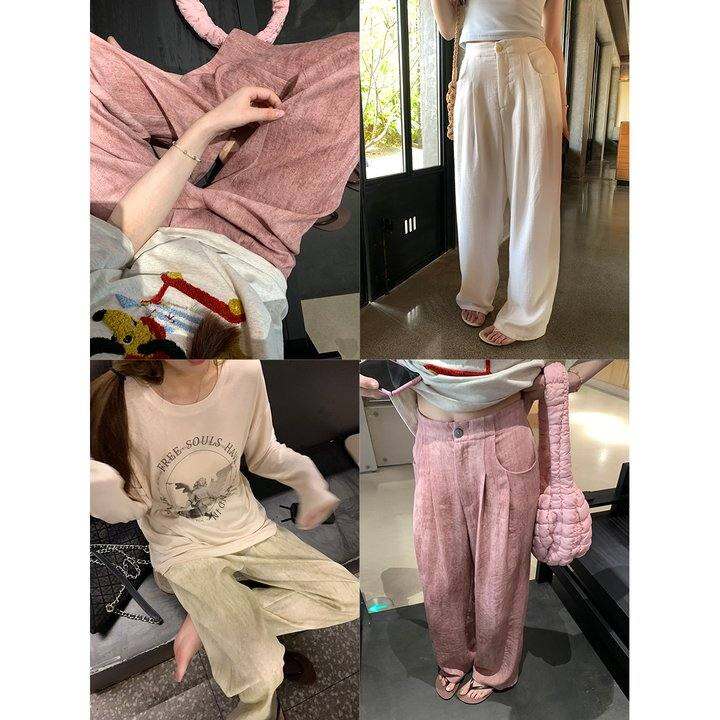 im向 舒适慢节奏 手工炒色亚麻混纺阔腿休闲裤女夏慵懒防晒直筒裤